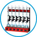 Complete compact extraction systems with stand, heating module, mount, hoses and glassware (round-bottom reaction flask, extractor, Dimroth condenser for extraction). Infinitely variable heating regulation.
